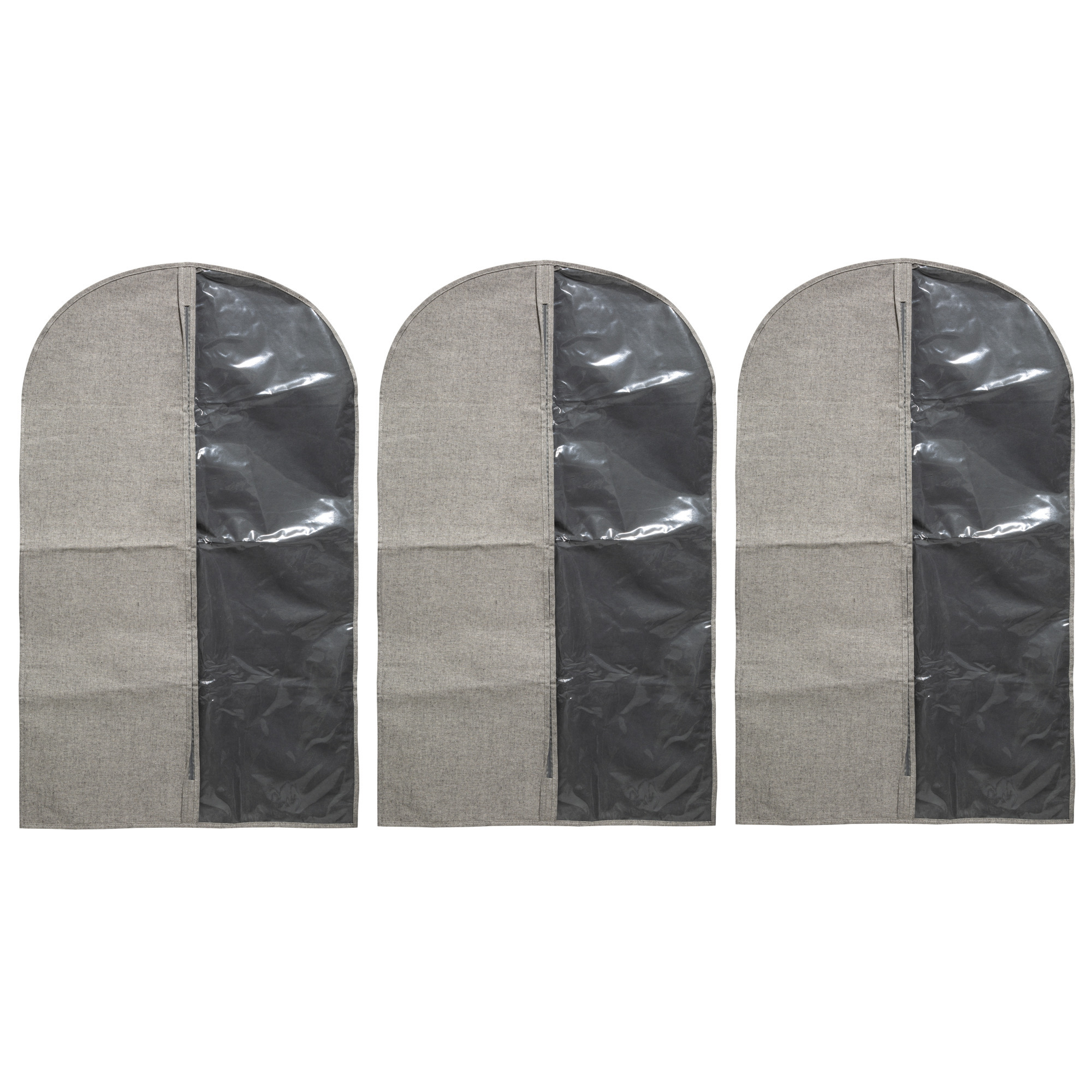 Set van 3x stuks kleding/beschermhoezen polyester/katoen grijs 100 cm. Kledinghoes om uw kleding netjes te houden of op een nette manier te vervoeren. Formaat hoes ca. 100 x 60 cm. Gewicht: 185 gram.