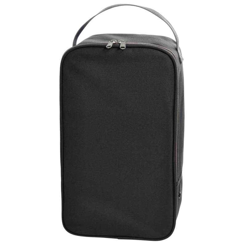 Zwarte schoenentas 12 liter voor 1 paar schoenen. Voorzien van grote ritssluiting. Inhoud: 12 liter. Formaat: 38 x 21 x 15 cm. Materiaal: 100% polyester. Reistas/opbergtas voor schoenen.
